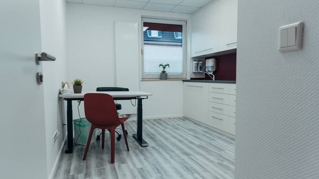 Um die Praxis optimal an die betrieblichen Anforderungen anzupassen, wurden durch gezielten Abriss und geänderte Wandaufteilung, zehn Räume neugestaltet. Dabei entstanden moderne Funktionseinheiten, die eine ansprechende und zeitgemäße Umgebung für die Behandlung der Patient: innen bieten. Ein besonderes Highlight ist das sorgfältig entwickelte Farbkonzept, das sich harmonisch durch alle Praxisbereiche zieht und für eine einladende Atmosphäre sorgt.